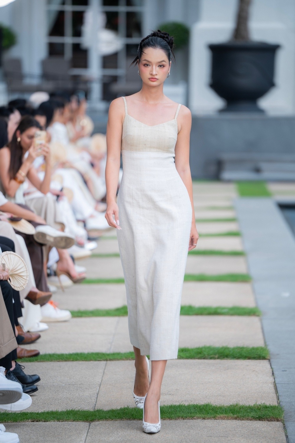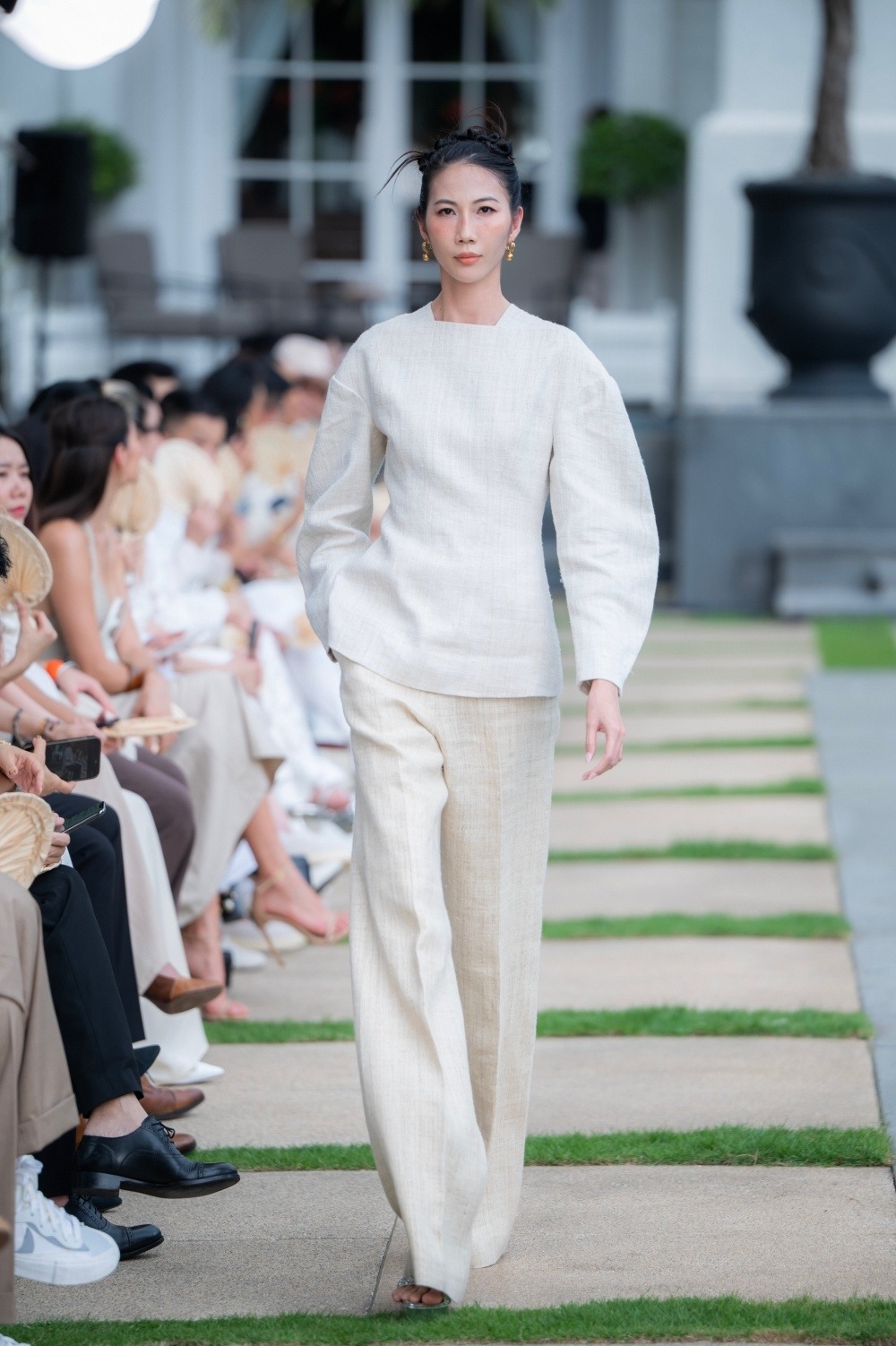 Nhà thiết kế kết hợp chất liệu lụa Mã Châu để tăng độ mềm mại cho trang phục.