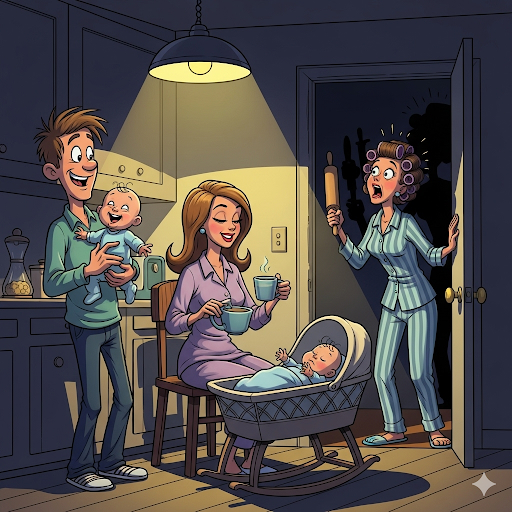 Anh chồng giật mình, lắp bắp: – Anh… anh chỉ đang giúp em nó ru bé ngủ thôi mà…