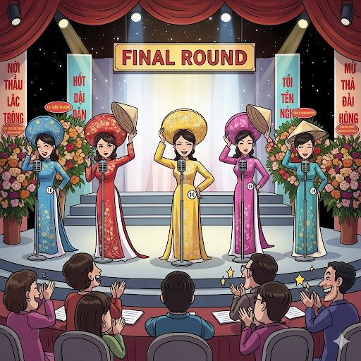 Trong cuộc thi hoa hậu toàn quốc, sau khi chọn ra 5 cô nàng vào vòng cuối với phần thi ứng xử với đề bài: