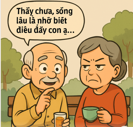Cụ bà ngồi bên cạnh chỉ khẽ liếc nhẹ, không nói gì. Cụ ông lập tức chỉnh lại tư thế ngồi, rót thêm trà cho vợ, rồi quay sang nói nhỏ: – Thấy chưa, sống lâu là nhờ biết điều đấy con ạ...
