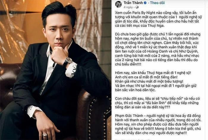 Status tiếc thương đồng nghiệp gây tranh cãi của Trấn Thành.