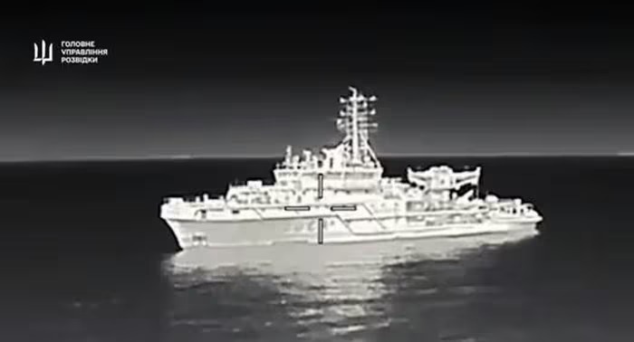 HUR công bố đoạn phim đen trắng cho thấy một UAV do Ukraine sản xuất đã đánh trúng đài chỉ huy của con tàu. Cơ quan tình báo Ukraine tuyên bố cuộc tấn công đã phá hủy các hệ thống tình báo điện tử của con tàu, khiến con tàu bị vô hiệu hóa và phải đi sửa chữa với chi phí lớn.