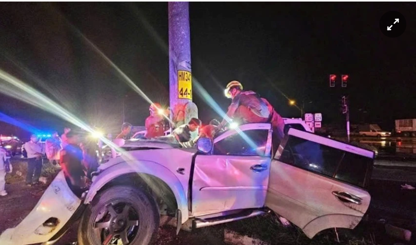 Vụ việc xảy ra vào khoảng nửa đêm 6/9 trên tuyến cao tốc 347, tỉnh Ayutthaya, miền Trung Thái Lan. Một chiếc SUV Mitsubishi màu trắng được cho là đã mất lái, lao lên dải phân cách giữa đường và đâm mạnh vào cột điện.