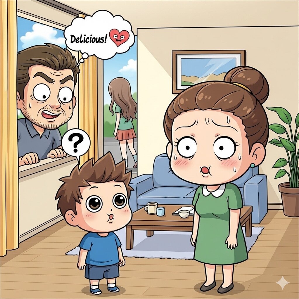 – Thế tại sao sáng nay, khi thấy một cô mặc váy ngắn đi qua, bố lại bảo: “Trông ngon thế”?