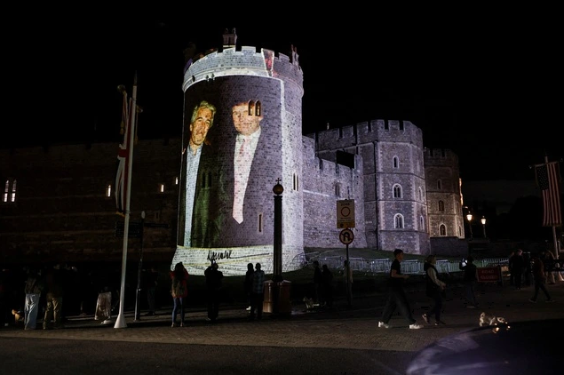 Trước đó, những người biểu tình ngày 16.9 giương cao một biểu ngữ lớn có hình ảnh của ông Trump và ông Jeffrey Epstein gần Lâu đài Windsor, và sau đó chiếu một số hình ảnh của cả 2 người lên một trong những tòa tháp của lâu đài.