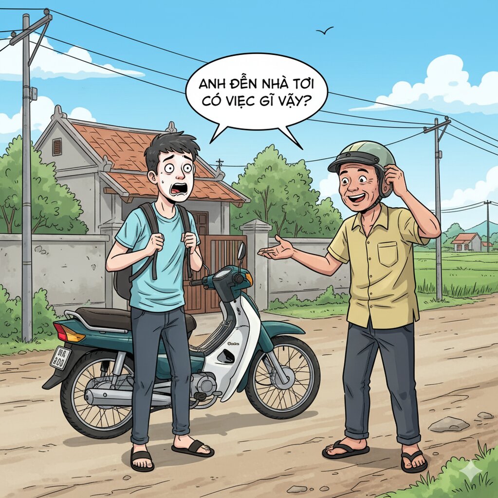 – Ủa, anh đến nhà tôi có việc gì thế?