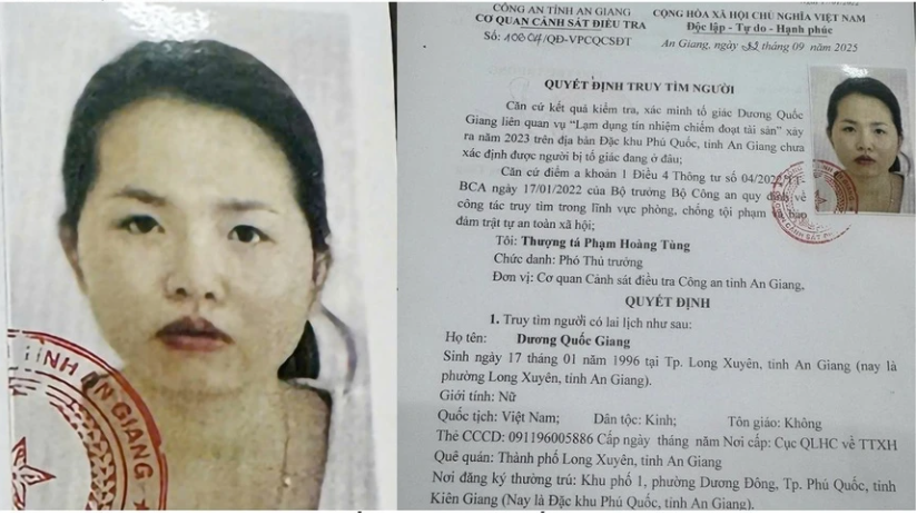 Công an tỉnh An Giang ra quyết định truy tìm đối tượng Dương Quốc Giang.