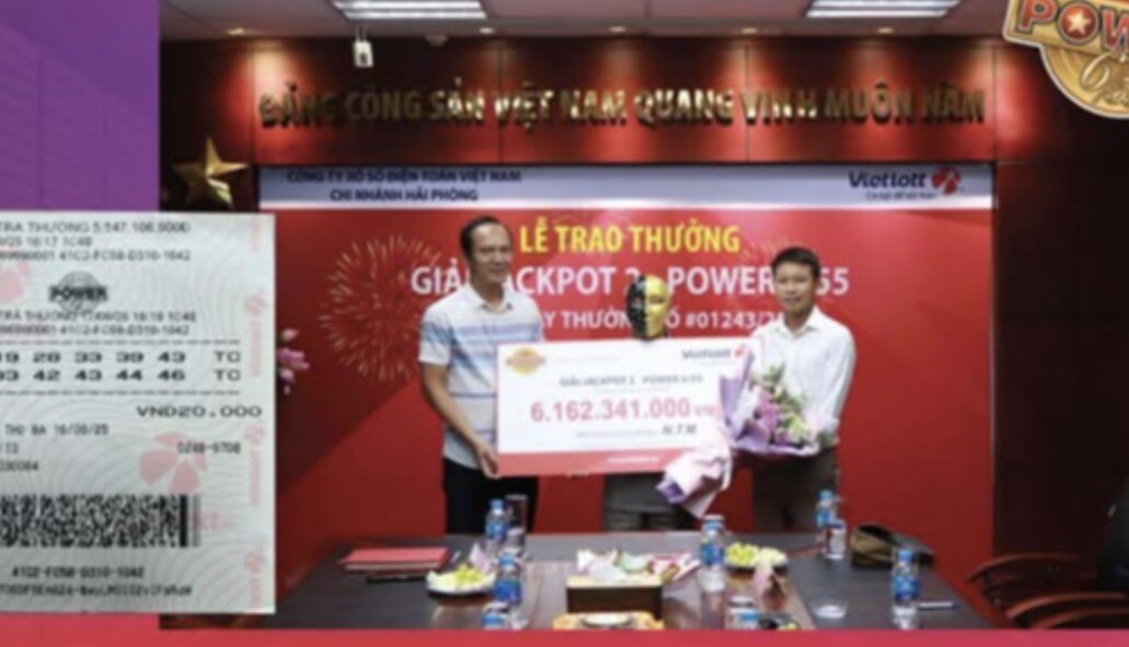 Mới đây, Công ty Xổ số Điện toán Việt Nam ( Vietlott ) đã tiến hành trao thưởng giải Jackpot 2 sản phẩm Power 6/55 cho khách hàng N.T.M. Giải thưởng thuộc kỳ quay số mở thưởng (QSMT) 01243 ngày 16/09/2025, với giá trị hơn 6 tỷ đồng.