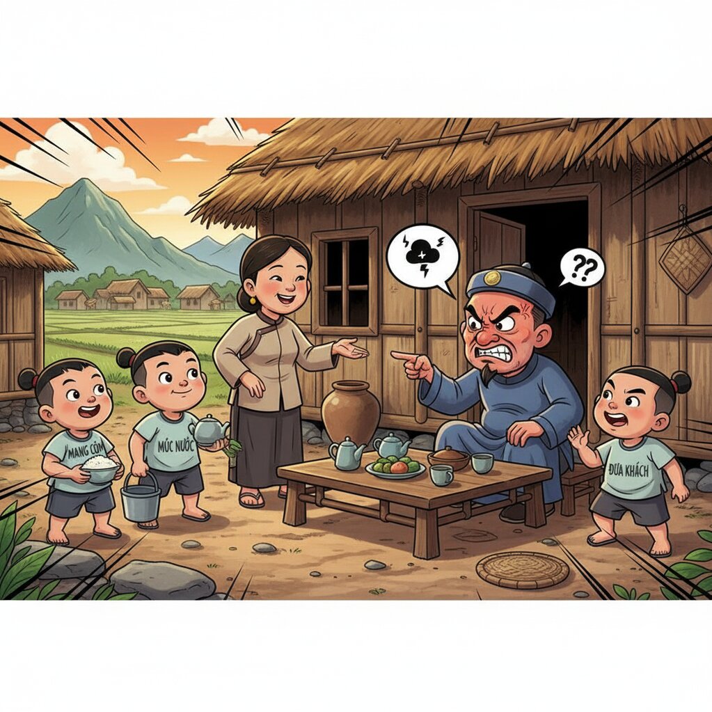 Một hôm, có ông khách quý đến chơi. Vợ thay mặt chồng tiếp đãi rất chu đáo.