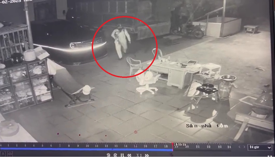 Theo hình ảnh từ camera, đối tượng che kín mặt, đội mũ, vai mang ba lô, bên hông đeo một vật giống vũ khí.