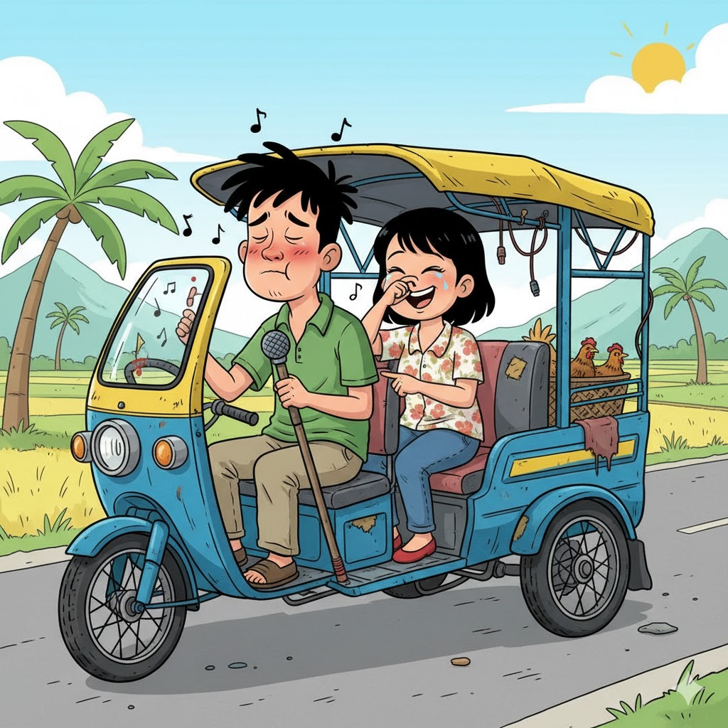 Trên chuyến xe lam, một anh chàng ngồi cạnh cô gái. Bỗng anh đau bụng, muốn “xì hơi”. Sợ quê, anh cố nhịn.