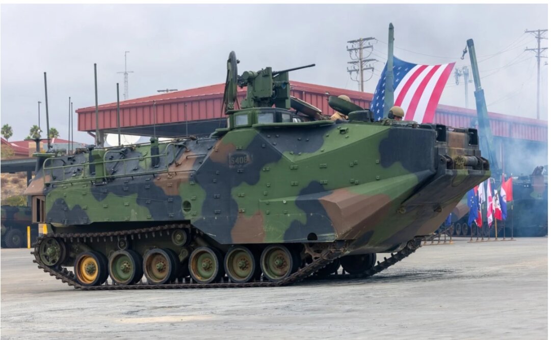 Một xe đổ bộ tấn công của Thủy quân Lục chiến Mỹ thực hiện chuyến diễu hành chính thức cuối cùng trước khi xuất biên trong lễ xuất ngũ tại căn cứ Pendleton, bang California, ngày 26/9. Ảnh: U.S. Marine Corps.