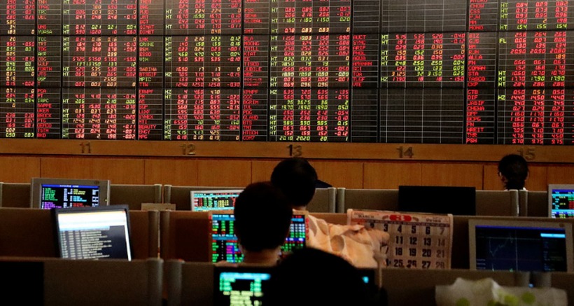 Nhà đầu tư theo dõi biến động chứng khoán trên bảng điện tử. (Ảnh: Reuters)