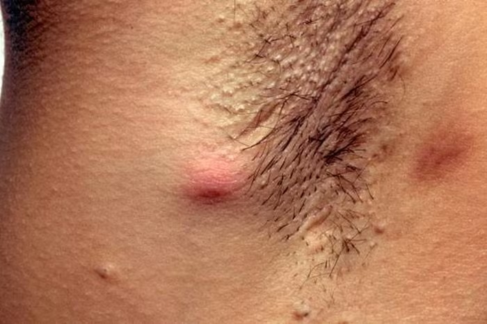 Viêm tuyến mồ hôi mủ gây ra các nốt sần, áp xe, sẹo đau đớn, thường xuất hiện ở nách, bẹn và các vùng nếp gấp da khác.