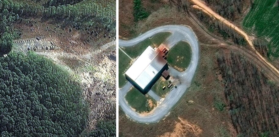 Nhà máy thuốc nổ của Accurate Energetic Systems trước và sau vụ nổ ngày 10/10. Ảnh: Reuters