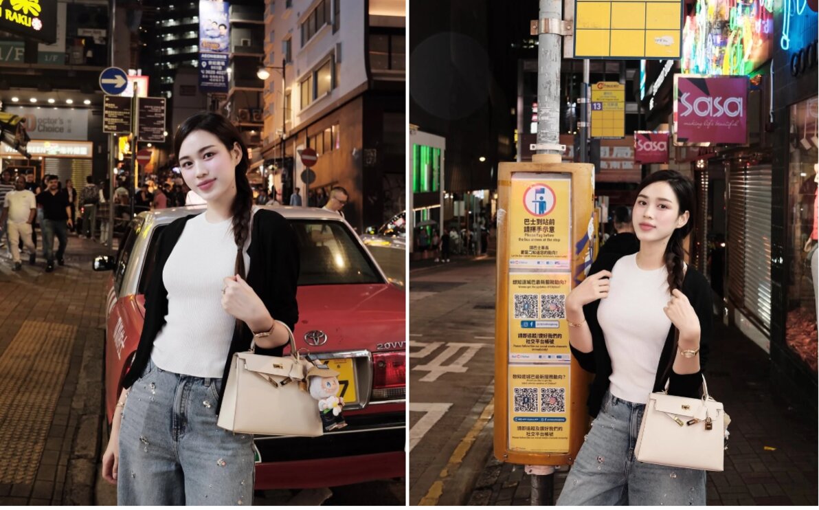 Gần đây, nàng hậu thường xuyên xuất hiện với chiếc Hermès Kelly Craie Epsom Sellier Kelly 25cm Gold Hardware. Mẫu túi trắng được Đỗ Thị Hà xách theo trong nhiều chuyến du lịch. Cô cũng treo phụ kiện Labubu lên nắp khóa, gia tăng điểm nhấn cho túi xách đắt đỏ. Món đồ được nhà đấu giá hàng đầu Sotheby’s bán ra với mức giá 32.000 USD (khoảng 843 triệu đồng). Đây được xem là một trong những món đồ hiệu đắt đỏ nhất của nàng hậu.