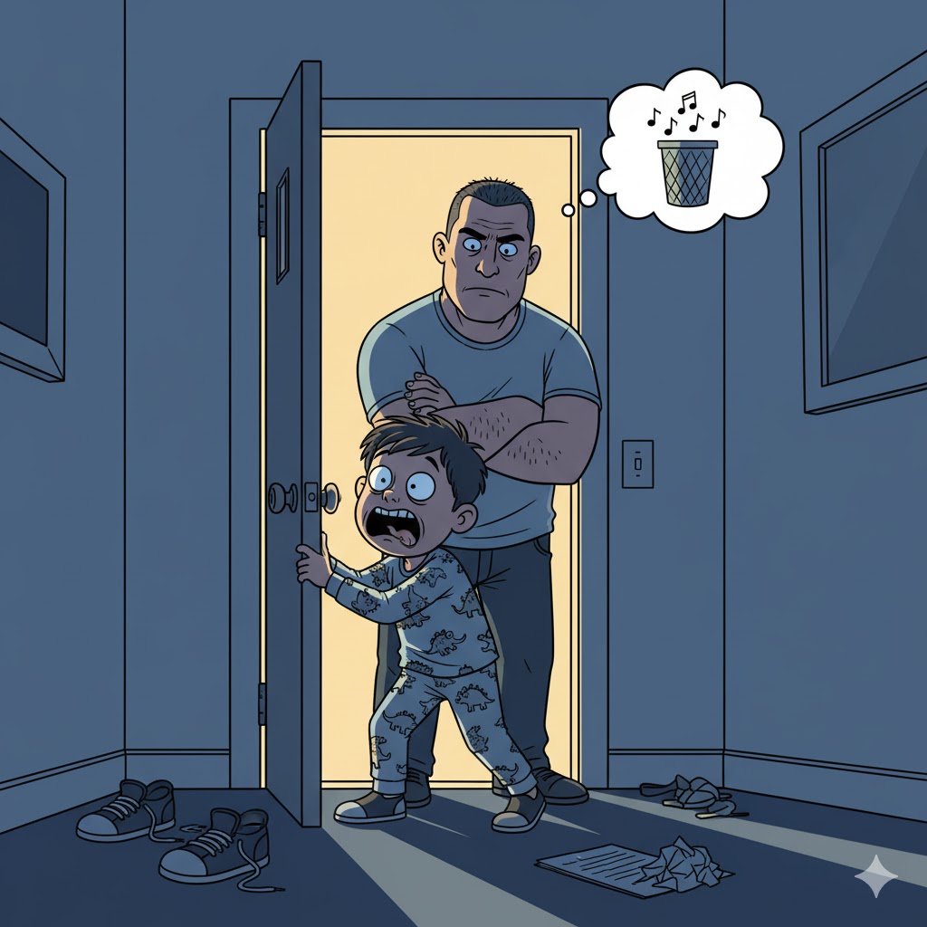 – Ừ, thế thì nhanh lên nhé... Chứ bố nghe cái thùng rác đó huýt sáo 5 lần rồi đấy!!!