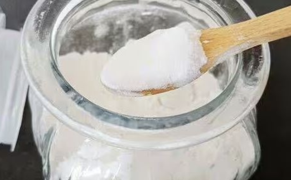 Rắc một lớp bột nở (baking powder) lên bề mặt khoai tây. Tracy giải thích rằng bột nở giúp hút ẩm hiệu quả và hạn chế khoai mọc mầm.