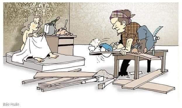 Sau khi no say, nàng tình tứ nhìn chàng và vẽ một chiếc giường. Chàng hậm hực bỏ đi một nước!