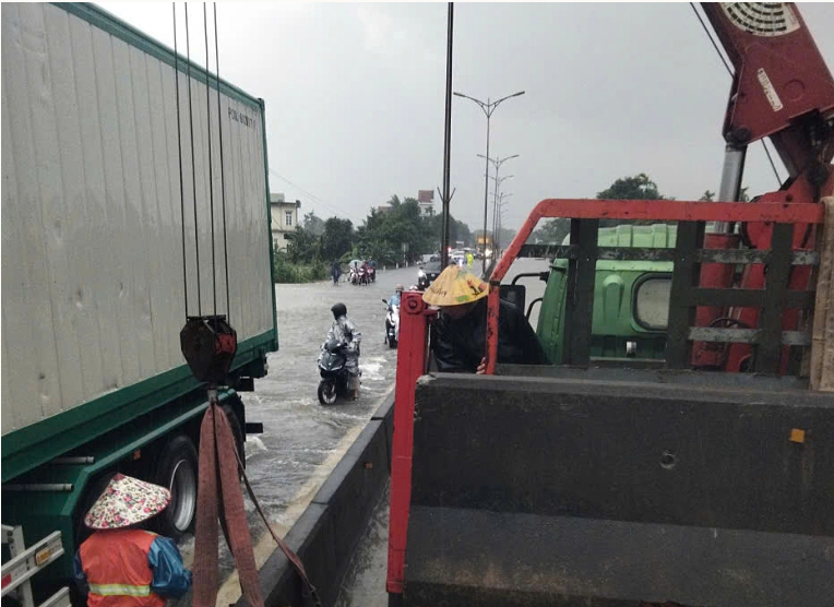 Quốc lộ 1 đoạn qua Phong Điền, TP Huế ngập 20-30 cm, hạn chế xe 4-7 chỗ lưu thông. Ảnh: Sở Xây dựng Huế