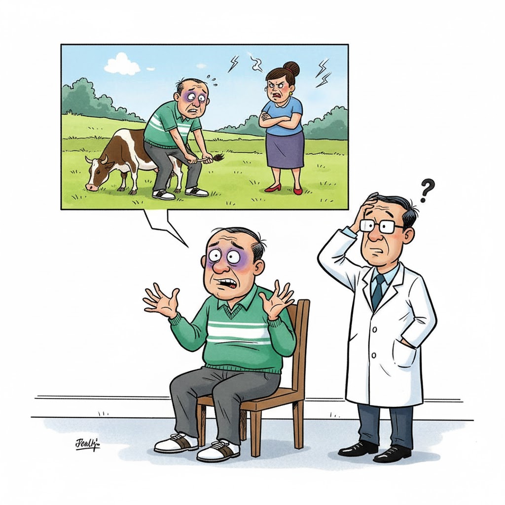 Một người đàn ông lảo đảo bước vào phòng cấp cứu với hai mắt bầm tím.