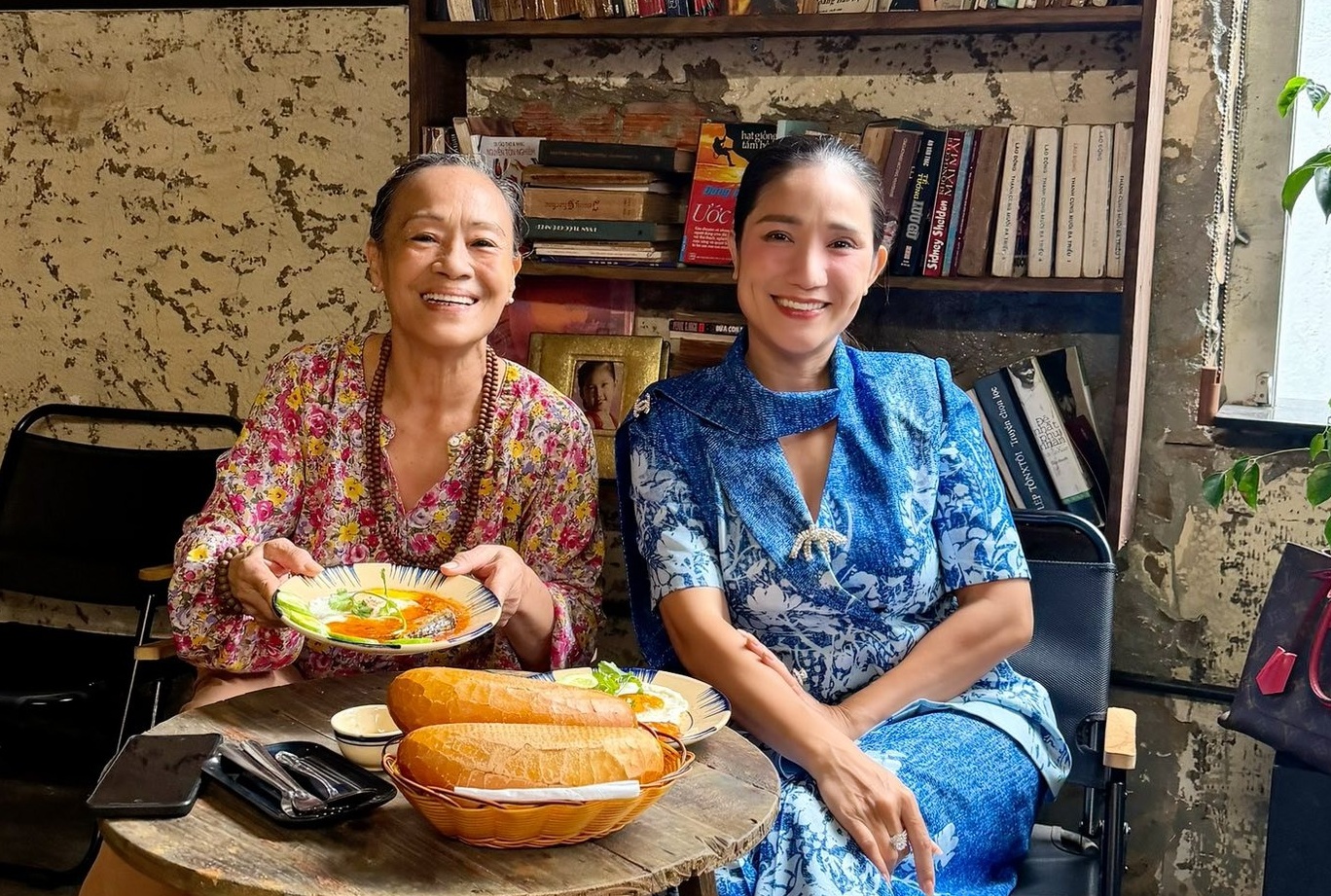 Nghệ sĩ Ưu tú Cát Tường và mẹ. Ảnh: FBNV
