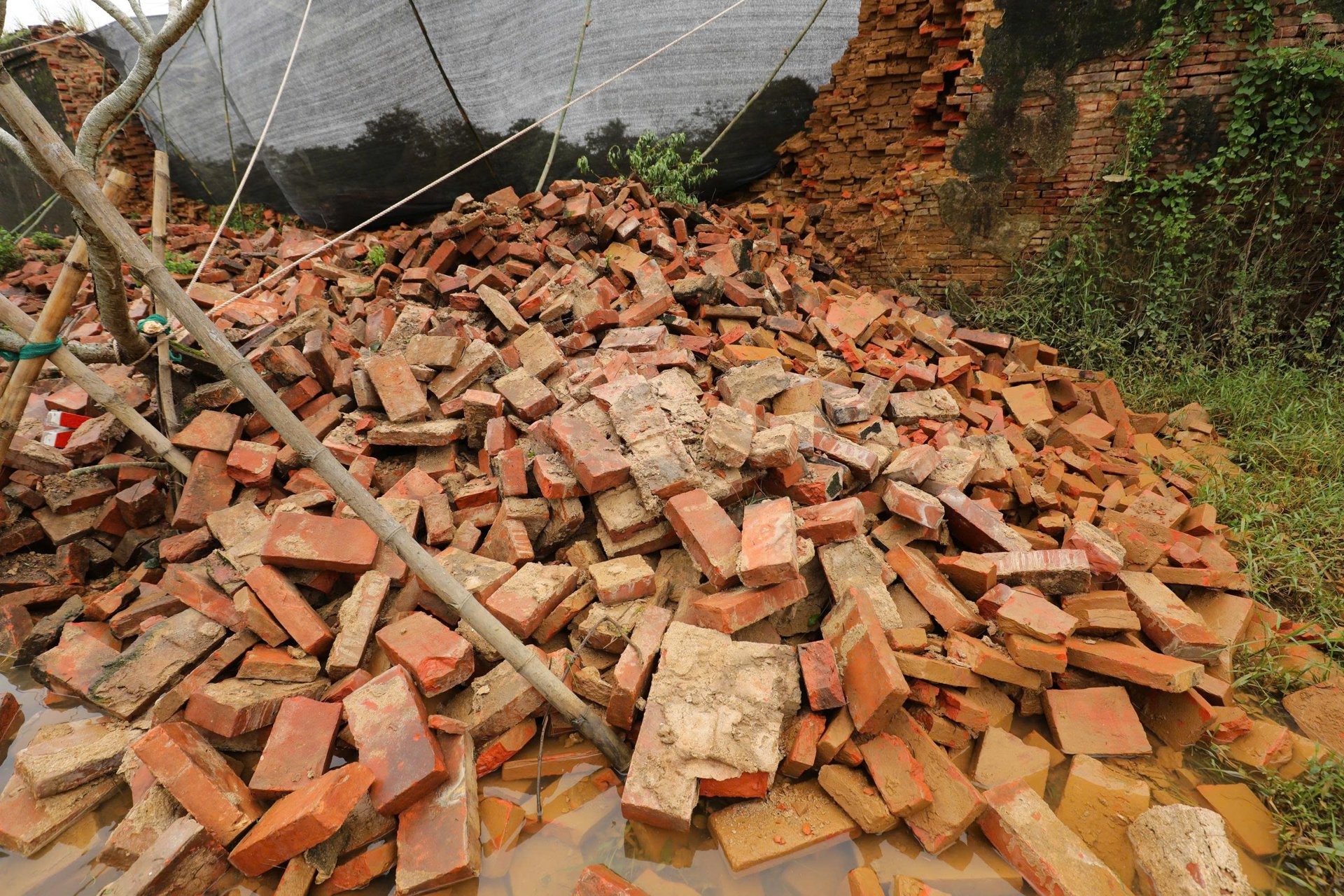 Hiện trường đoạn tường Hoàng thành Huế bị đổ sập vào tối 2/11 vừa qua. Ảnh: Xuân Đạt
