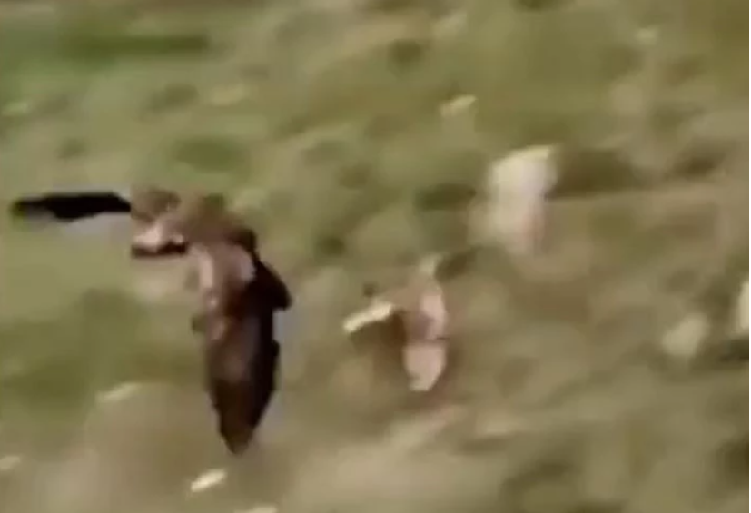 Đoạn clip ghi lại khoảnh khắc đại bàng vàng từ trên cao sà xuống với tốc độ chóng mặt, liên tiếp tung đòn khiến chó sói chỉ biết bỏ chạy trong tuyệt vọng trước khi bị khuất phục hoàn toàn.