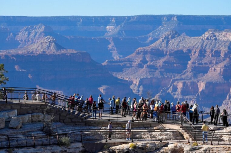 Du khách tại công viên quốc gia Grand Canyon, bang Arizona, Mỹ ngày 1/10. Ảnh: AP