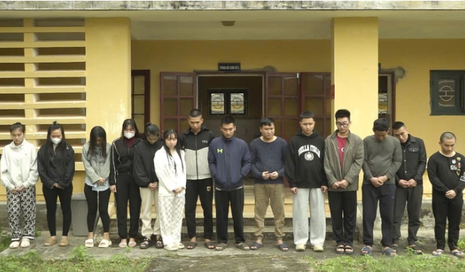 Những kẻ liên quan đến đường dây lừa đảo vừa bị Công an tỉnh Quảng Trị phối hợp triệt phá, bắt giữ. (Ảnh: Công an Quảng Trị)