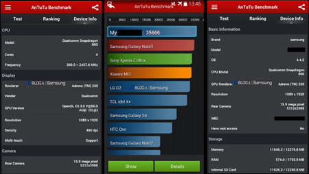 Ảnh chụp màn hình điểm bechmark của AnTuTu cho thấy Galaxy S5 sẽ là chiếc điện thoại mạnh mẽ nhất của Samsung với điểm số 35.666, vượt cả Galaxy Note 3 và Xperia Z Ultra của Sony vốn là 2 smartphone mạnh mẽ nhất trên thị trường hiện nay.