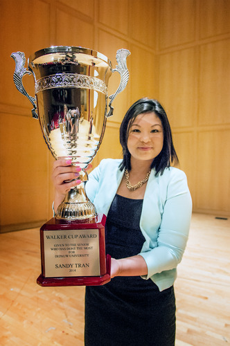 CHICAGO – Sinh viên Sandy Trần đã được trường đại học Depaul Univeristy tặng DePauw's Walker Cup 2014, một giải thưởng được trao cho những sinh viên năm thứ tư đóng góp nhiều nhất cho cộng đồng trong trường đại học trong bốn năm học. Trường này còn được viết gọn là DePauw.