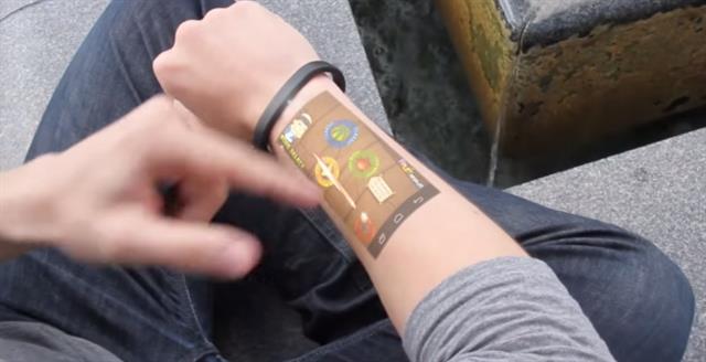 Việc vuốt chạm ngay trên cổ tay cũng giống như bạn đang sử dụng một điện thoại thông minh vậy, các trò chơi, nhắn tin, nghe gọi… Đây không phải là một hình xăm mà là hình ảnh đến từ một máy chiếu.
