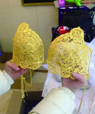 Cận cảnh chiếc áo lót toàn vàng nguyên chất.