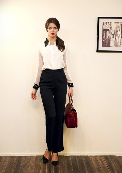 So với set đồ jeans trên, set đồ quần âu bên dưới có thể không trẻ trung bằng, nhưng chắc chắn sẽ thanh lịch và đẹp hơn khi đặt chân vào những công sở lớn.