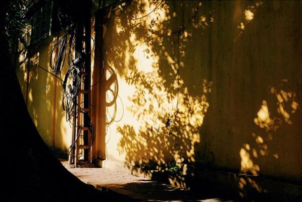 Nắng và những tán cây vẽ bức tranh mùa hè trên mảng tường vàng. (Ảnh: Instagram bankhanh).