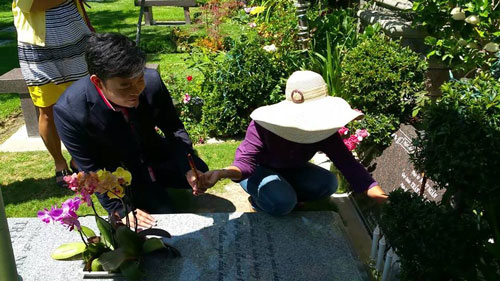 Trước đó, nam ca sĩ cũng từng gây sóng dư luận với hình ngồi lên mộ nhạc sĩ này trong chuyến thăm viếng trước đó.