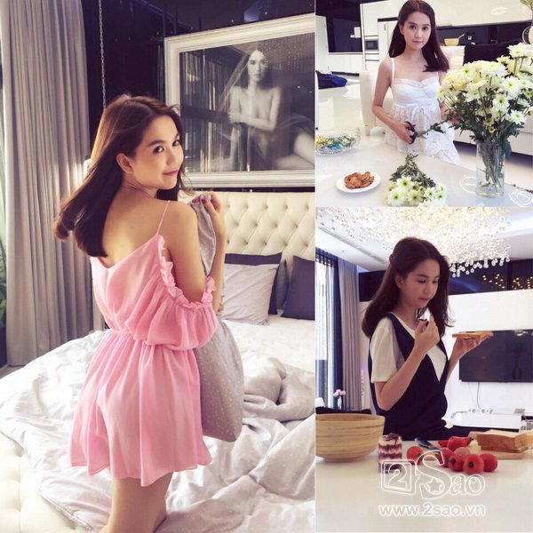 Và hôm qua (10/11), trong một buổi chụp hình cho tạp chí tại ngôi nhà, 2Sao đã có cơ hội tận mắt ngắm nhìn cũng như tranh thủ "chộp" lại những hình ảnh trong căn nhà đẹp và hoành tráng của Ngọc Trinh. Tông màu chủ yếu được Ngọc Trinh lựa chọn trong nhà mình là màu trắng, không gian rộng lớn thoải mái và đầy đủ tiện nghi. Bước chân vào nhà, mọi người có thể choáng ngợp với sự xa hoa lộng lẫy.
