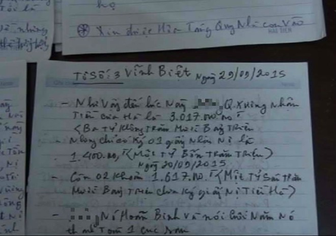 Một trong những lá thư tuyệt mệnh ông Hà để lại