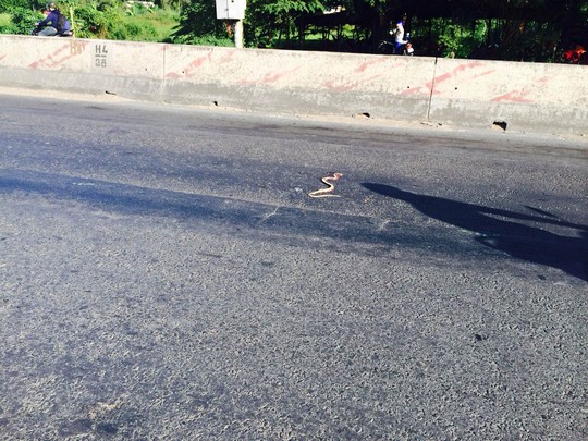Con rắn tiếp tục bò ra dãy phân cách và bị một xe ô tô cán chết.