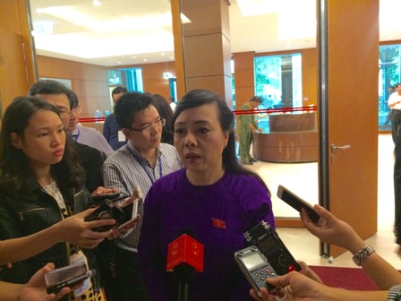 Bộ trưởng Bộ Y tế Nguyễn Thị Kim Tiến trao đổi với báo chí bên hành lang Quốc hội sáng 19/11 (Ảnh: Thế Kha).
