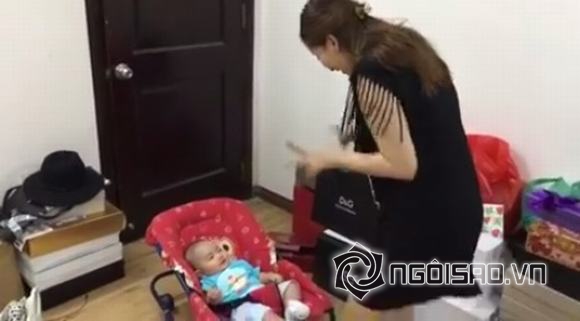 Trong clip, Khánh Thi vui chơi và nhảy cho con xem. Dường như mẹ Khánh Thi có thể làm bất cứ điều gì chỉ cần con trai của mình cười vui.