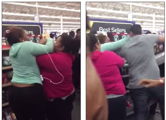 Một đoạn clip khác cũng được quay tại cửa hàng Walmart này cho thấy 2 phụ nữ đã lao vào đánh nhau để giành một cái ti-vi giảm giá. Đoạn clip được ghi hình trong đêm lễ Tạ ơn 26-11 quay cảnh một đám đông khách hàng đang chen nhau để đến chỗ những chiếc ti vi giảm giá.