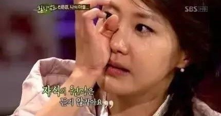 Cũng trong buổi phỏng vấn này, Shin Eun Kyung khóc nức nở kể về bệnh tình con trai. “Cuộc đời tôi là chuỗi dài những ngày tháng bi kịch. Con trai mắc chứng não úng thủy, 9 tuổi nhưng chỉ có trí não của một bé 2-3 tuổi. Tuần nào, tôi cũng đưa con đi kiểm tra ở viện. Bệnh viện nói cháu không thể phẫu thuật, vô phương cứu chữa. Nhưng tôi nhất định không bao giờ bỏ cuộc, mãi mãi bảo vệ con” - cô khóc nói.