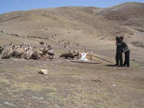 Thiên táng là một tục lệ mai táng rùng rợn tồn tại lâu đời ở Tây Tạng. Thi thể người chết sẽ bị xả ra làm nhiều mảnh nhỏ và mang lên đỉnh núi làm mồi cho các loại động vật, đặc biệt là các loài chim ăn xác thối như kền kền. Những phần cứng còn lại như xương sẽ được đập nhỏ, nghiền ra trộn với mạch nha cho lũ quạ và diều hâu ăn. Người Tây Tạng coi kền kền là “thần điểu” nên họ tin rằng người chết sẽ sớm được siêu thoát nếu thi thể được kền kền ăn hết. Chính phủ Trung Quốc đã cấm hủ tục này vào những năm 1960.