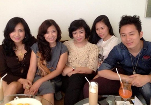 Hình ảnh hiếm hoi của Tùng Dương và bạn gái hoạ sĩ (áo trắng).