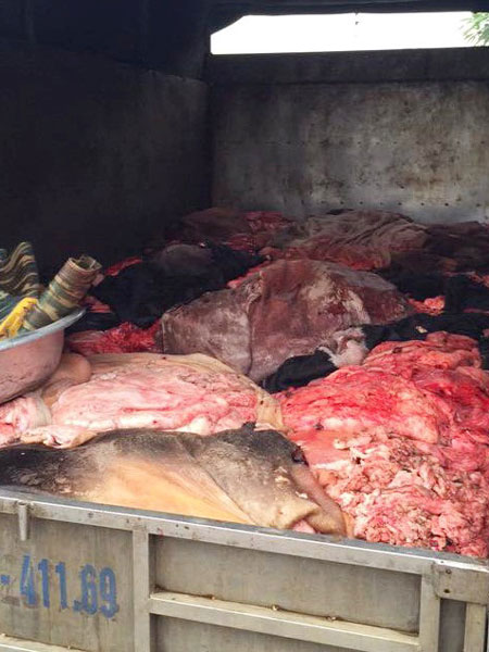 Hàng tấn da, nội tạng trâu bò hôi thối tuồn vào Hà Nội.