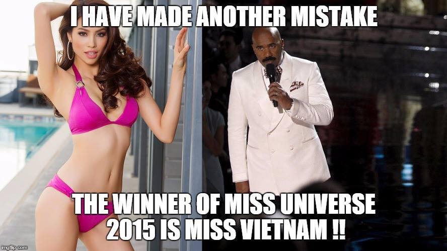 "Xin lỗi tôi nói nhầm lần nữa người thắng Miss Universe 2015 là Miss Viet Nam!"