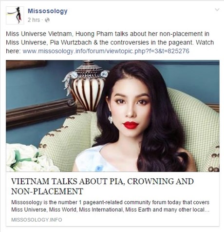 Theo đó, trên chuyên trang sắc đẹp Missosology bất ngờ xuất hiện một bài đăng, trong đó, Phạm Hương đã trả lời phỏng vấn về sự việc diễn ra vào đêm chung kết cuộc thi cho một tờ báo. Cụ thể bài đăng như sau: