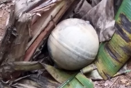 Ngay sau đó, có người nói phát vật lạ rơi xuống nên đã cùng nhau tỏa đi tìm. Tại nhà vườn nhà bà Trần Thị Lợi ở thôn 1, xã Tân Đồng, người dân và lực lượng dân quân xã Tân Đồng đã tìm thấy một vật hình tròn đường kính khoảng 40cm
